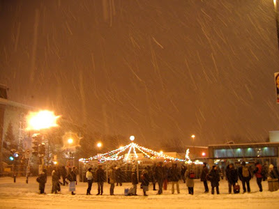And despite the significant snowfall, life goes on faster than ever; these days people just use the slickness of the ice to propel themselves along the sidewalk. Interestingly, while treading through the powder and slush today, I noticed that loudspeakers on the street light posts are currently blasting christmas carols. It's a nice soundtrack for my window shopping.