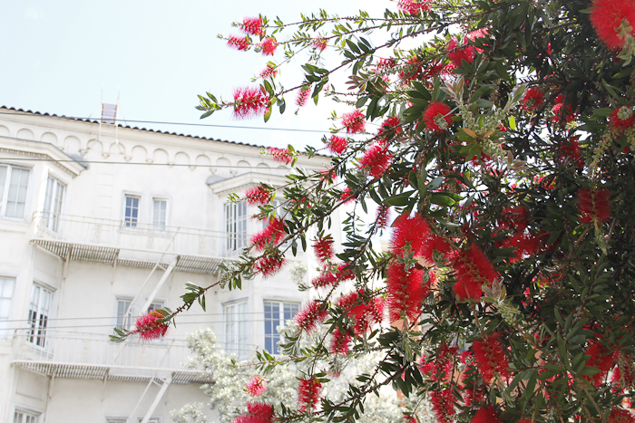 We drove from Laguna Beach to San Francisco in one beautifully sunny day, along a highway (I-99) that was lined with bright pink and white flowers for hundreds of miles. When we arrived in the city during the late afternoon, I caught my first glimpse of it as we drove across the Bay Bridge from Oakland.